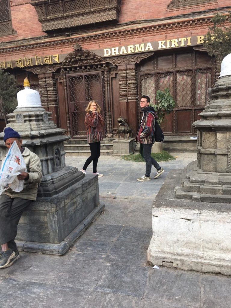 Das Ende des Januars haben wir in Nepal verbracht (Ja ich bin „up to date“ mit diesem Bericht). Da wir nur ein paar Tage außerhalb von Indien verbringen konnten, haben wir uns die ganze Zeit in Kathmandu aufgehalten. Dort oben waren viel geringere Temperaturen, als wir es aus Madurai kennen. Von um die 30 Grad ging es für in Gebiete, die nur halb so warm waren. Da wir diesen Trip in Deutschland noch nicht unbedingt eingeplant hatten, hatten wir natürlich auch nicht die nötige Kleidung. Also haben wir gleich am ersten Tag noch Kleidung zum Schichten gekauft. So kam es, dass ich immer drei Leggings übereinander getragen habe. Dazu habe ich noch Unterhemd, langes Oberteil, Fleece Jacke Nr. 1, Fleece Jacke Nr.2 und Schal angezogen. Ich bin aber auch immer extrem schnell am Frieren. Auch wenn in Madurai die Temperaturen unter 30 Grad gehen, ziehe ich mir schon Jacke oder Schal drüber. (Ich will gar nicht daran denken, wie es sein wird, mich an die kalten Temperaturen in Deutschland zu gewöhnen.) Im Übrigen gab es dort auch keine Heizungen, aber warmes Wasser zum Duschen (nur in Kathmandu), wofür ich echt dankbar war.