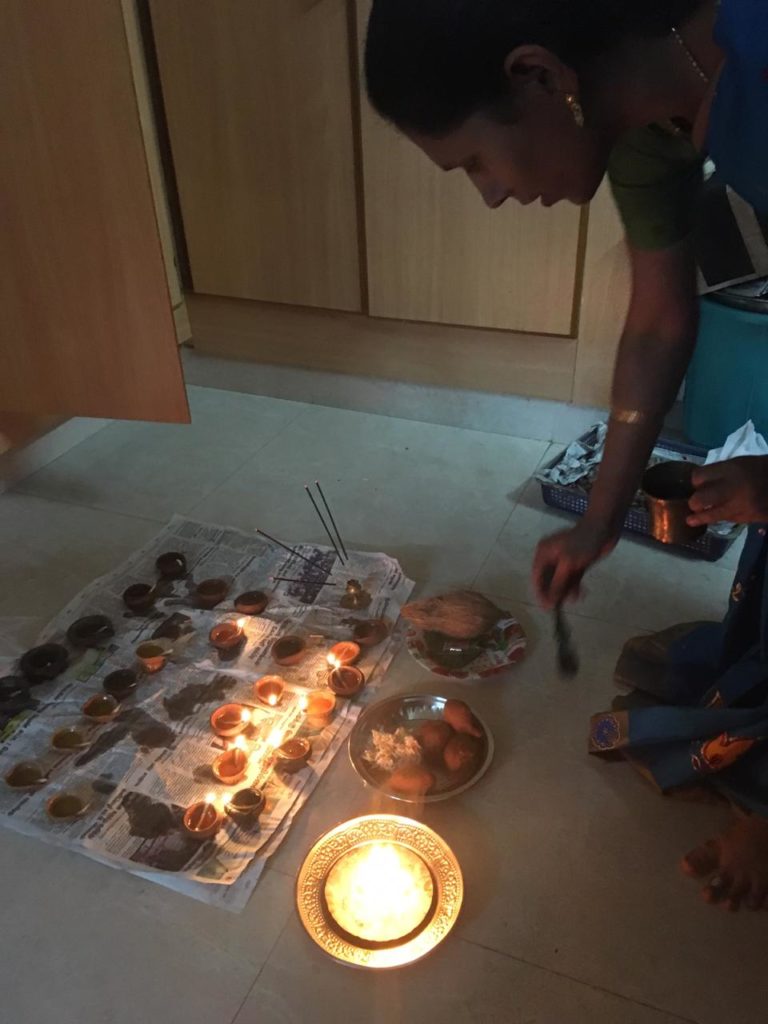 kleine Öl-Kerzen aufgestellt werden. Damit sollen böse Geister ferngehalten