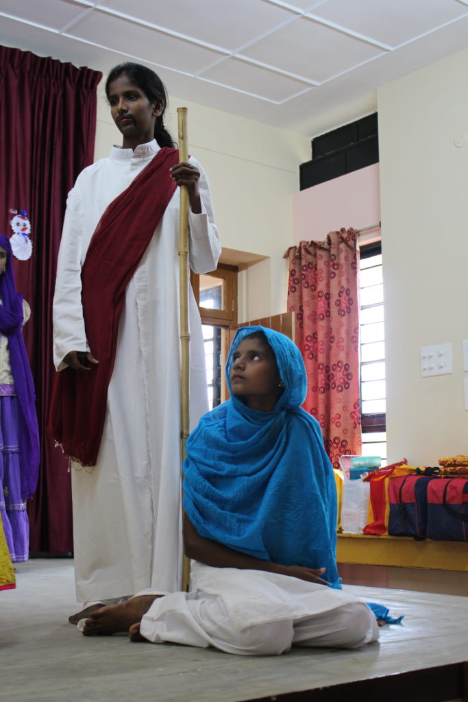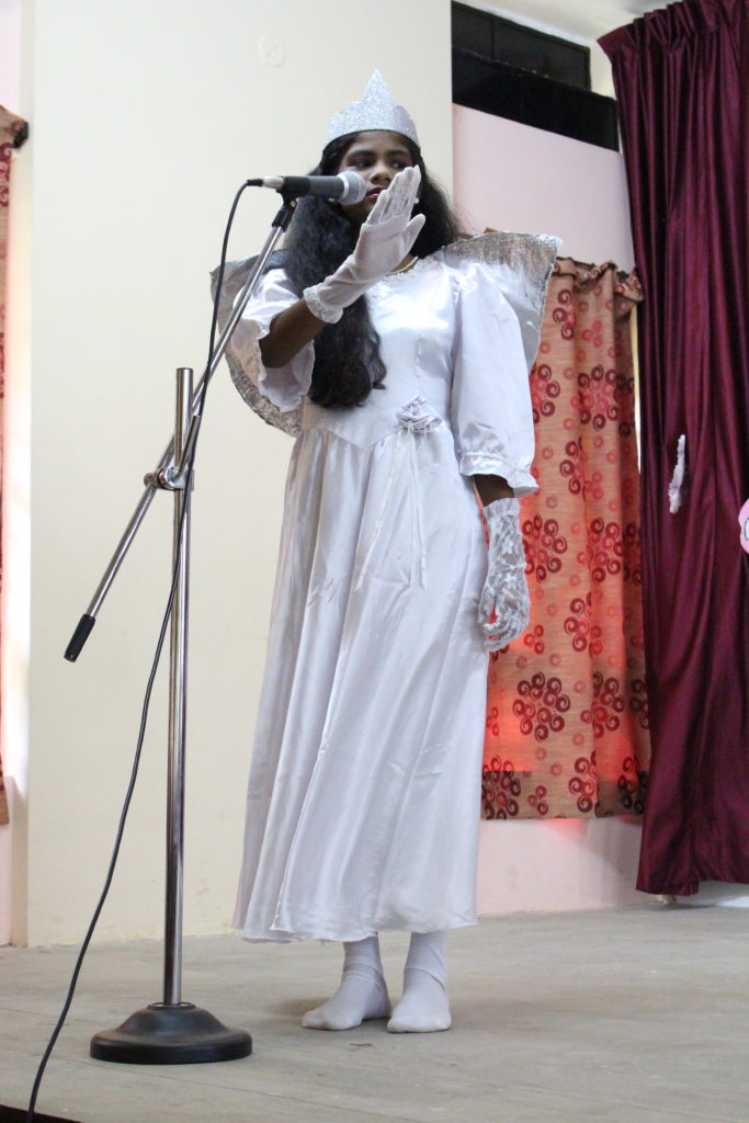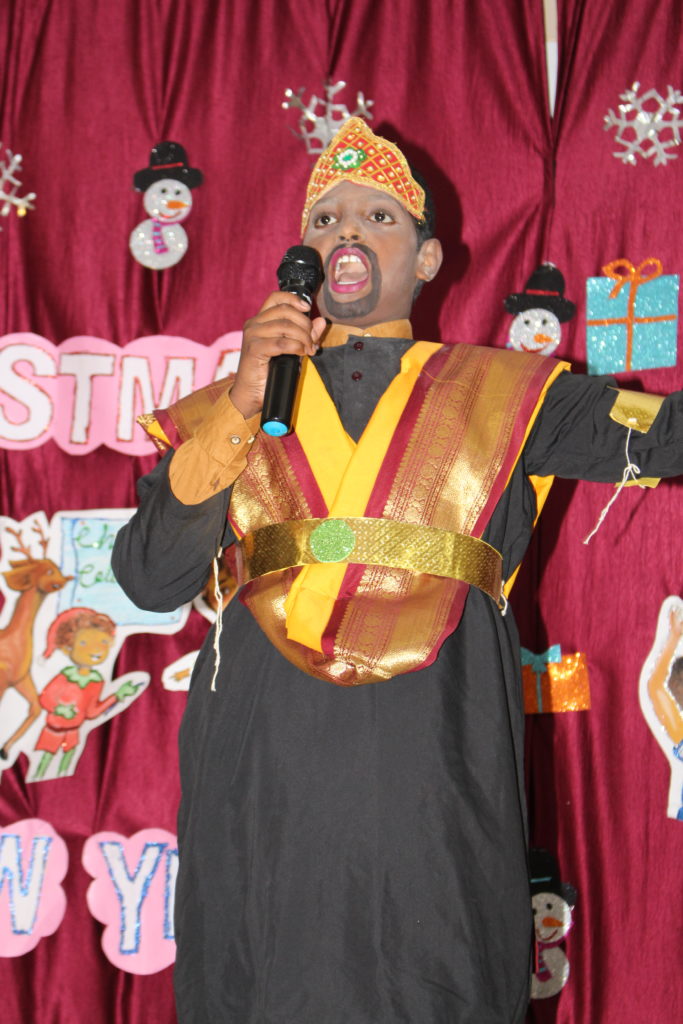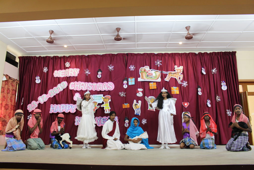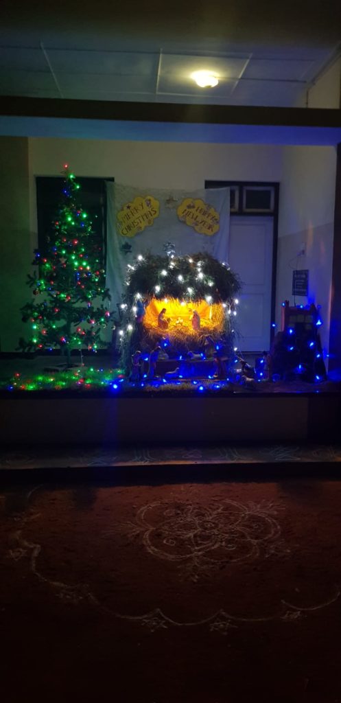 Am 23. Dezember haben wir dann mit der ganzen Schule – auch wenn nur ein geringer Prozentsatz christlich ist – Weihnachten gefeiert. Zum Mittagessen gab es für die Kinder sowie die Lehrer einen Feiertagsschmaus und am Nachmittag wurde im Saal zelebriert. Von den Kindern wurde ein Krippenspiel vorgeführt. Anstelle der Schafe gab es Zicklein, was das Stück ein bisschen indischer wirken ließ. Ein paar der Mädchen haben verschiedene Tänze vorbereitet oder gesungen. Leider hat auch bei dieses Mal die Musik nicht mitgespielt, sodass die Musik öfters abgebrochen ist. Auch der Weihnachtsmann kam vorbei.