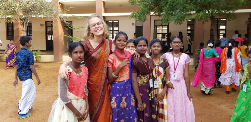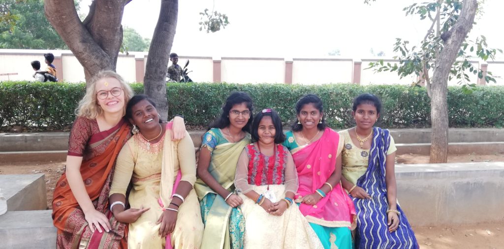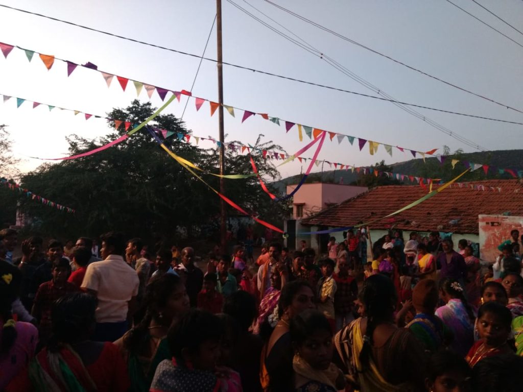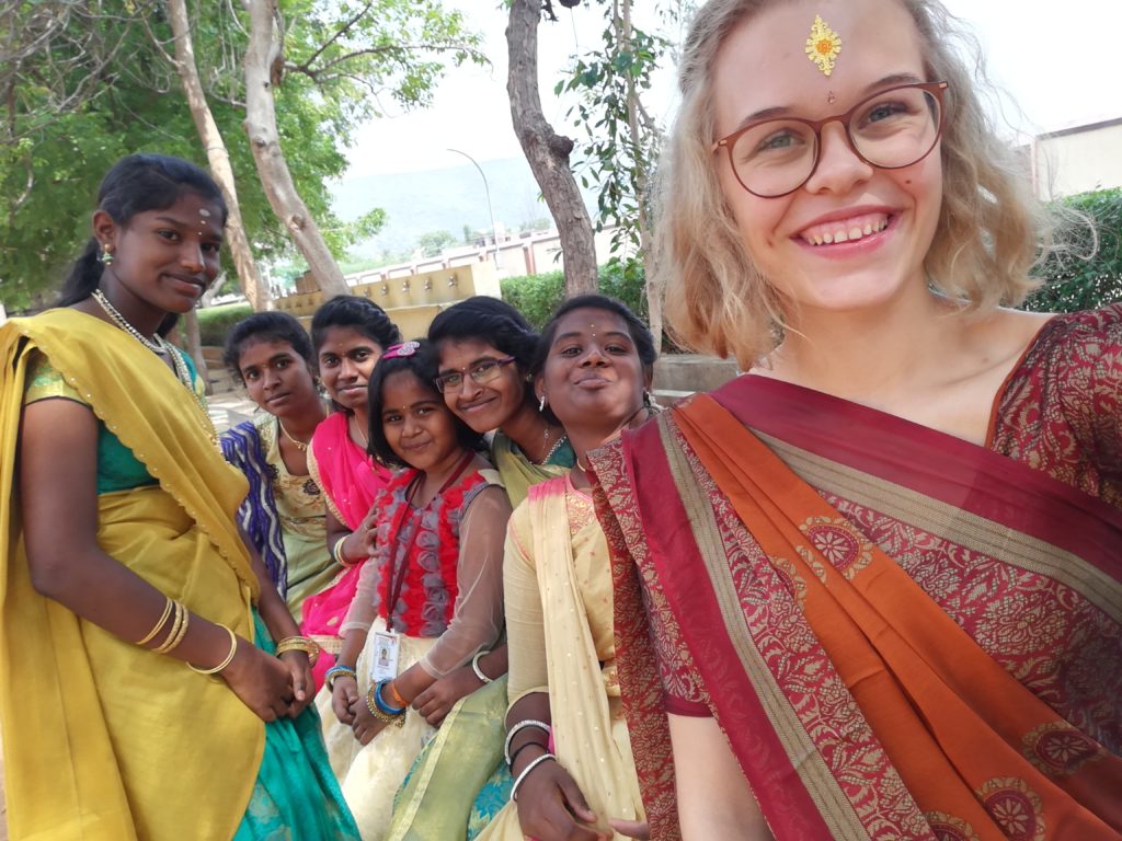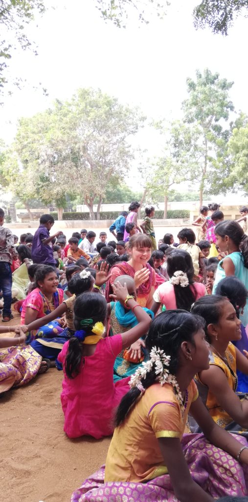 Später sind wir mit einem der Fathers ins Dorf nebenan gegangen, um uns dort die Spiele anzuschauen. Das war definitiv einer der Highlights, die ich hier in Indien erleben durfte. Sobald ein paar der Mädchen aus der Schule mich erspähten, wurde ich auch schon an die Hand genommen und von ihnen in die Menge gezogen. Mir nichts, dir nichts waren wir drei deutschen Mädchen auch schon die nächsten, die beim Tauziehen antreten sollten. Unter teilweise unfairen Bedingungen, haben wir das Spiel gewonnen und haben einen Silberteller als Trophäe überreicht bekommen. Und Schwupps wurde ich wieder in die Menge gezogen. Nun ging es darum, sämtlichen Müttern und kleinen Geschwistern vorgestellt zu werden. Ich hatte teilweise so viele Mädchen an der Hand, dass jede einen meiner Finger umklammert hatte. Als ich dann soweit durch war und von fast jedem einmal begrüßt wurde, durfte ich weiter bei den Spielen zuschauen. Da sollten Männer drei Steine hochstemmen und über ihre Schulter werfen (hat mich irgendwie an Wickie und die starken Männer erinnert). Doch nach dem Spiel wurde es auch schon zu dunkel und wir mussten zurück. Aber ich bin froh, dass ich überhaupt abends raus durfte und auch so nah an die Leute aus dem Dorf kommen konnte. Die haben einen schon für die bloße Anwesenheit so viel Freude und Dankbarkeit entgegengebracht. Das bekomme ich anders wahrscheinlich nicht noch einmal in dieser Form zu spüren.