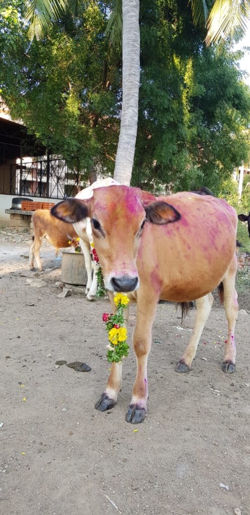 Weiter geht es mit dem dritten Tag im Bunde: Maattu Pongal. Dieser Tag ist für die Tiere gedacht. Es gibt ein Spiel mit dem Namen Jallikattum, welches von jungen Männern an diesem Tag gespielt wird. Dabei muss „Mann“ versuchen einen wütenden Bullen zu beruhigen. Am Hals befindet sich ein Sack mit Geld und wenn der Bulle ruhig genug ist, kann dieser abgenommen werden. Früher kam noch dazu, dass ein Mann dieses Spiel gewinnen musste, bevor er ein Mädchen im Dorf heiraten durfte.
